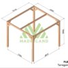 Esta pérgola de madera autoportante está disponible en varias dimensiones para adaptarse a las características de su jardín. La cantidad de postes (P), vigas (V) y travesaños (T) varían en función del tamaño seleccionado. Puede ver la cantidad exacta de cada tamaño en las imágenes 3D que encontrará debajo de la foto principal de la pérgola y/o en la imagen a la derecha de este texto.