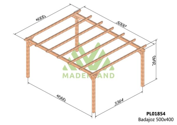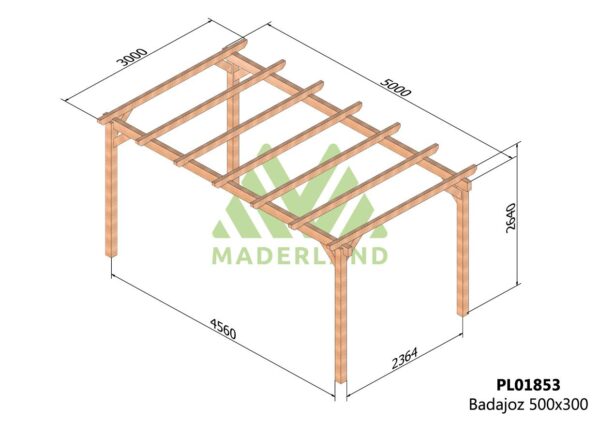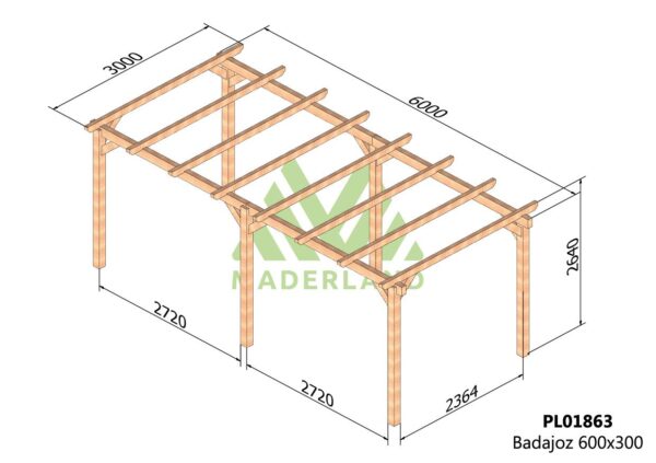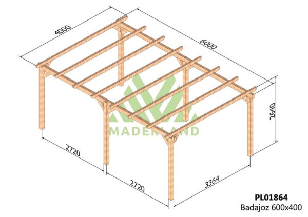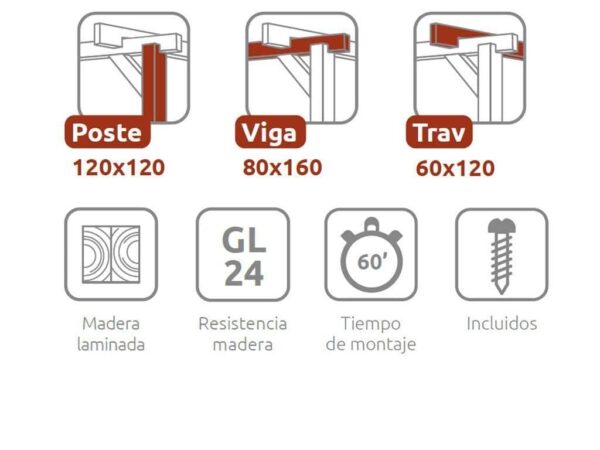 Detalles de Postes, Vigas y TravesañosEste porche para coche de madera está fabricado con madera laminada proveniente del norte de Europa donde el lento crecimiento garantiza unas mejores propiedades mecánicas ante cualquier posible adversidad, mejorando la resistencia a la flexión estática, a la compresión y a la tracción.