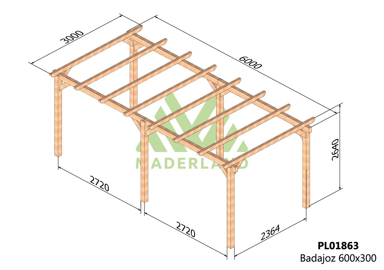 Tenga presente que, desde el punto de vista estructural y de resistencia, las partes más importantes de una pérgola para coche son las vigas, seguidas de los travesaños y, por ultimo los postes. A nivel general, a mayor sección de madera (a mayor grosor) más resistencia.
